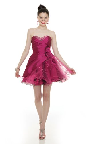 This Mori Lee Sticks & Stones short prom dress, 9099, is a dress thatÕs perfect for prom 2012 or homecoming! The iridescent taffeta top has a strapless, sweetheart neckline and diagonal pleating. Sparkling beadwork adds a beautiful touch to the neckline and skirt. The natural waistline is accented by 3D flowers with beaded centers. The mid back has an adjustable lace-up corset panel for a perfect fit, without alterations. The short tulle skirt is easy to wear and has layers of poufy tulle with finished edges and a taffeta asymmetrical overlay. Layers of colored and black tulle give a multi-toned effect. Look your best in this elegant gown. Mori Lee is a leading prom and bridal designer. Their Sticks & Stones collection features affordable short dresses for prom, homecoming and social occasion. Authentic, new, with original designer tags. Taffeta and Tulle. Fully lined. Dry Clean. Imported.** CERTAIN CONTENT THAT APPEARS THIS SITE COMES FROM AMAZON SERVICES LLC. THIS CONTENT IS PROVIDED ‘AS IS’ AND IS SUBJECT TO CHANGE OR REMOVAL AT ANY TIME.