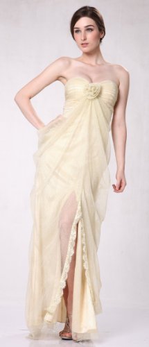 Strapless full length dress with high slit on front, sweetheart neckline, pleated chest with mesh flower patch. Satin skirt with sheer top layer and lace trim. Fully lined with built in bra. Color available in Champagne, Green and Eggplant.** CERTAIN CONTENT THAT APPEARS THIS SITE COMES FROM AMAZON SERVICES LLC. THIS CONTENT IS PROVIDED ‘AS IS’ AND IS SUBJECT TO CHANGE OR REMOVAL AT ANY TIME.